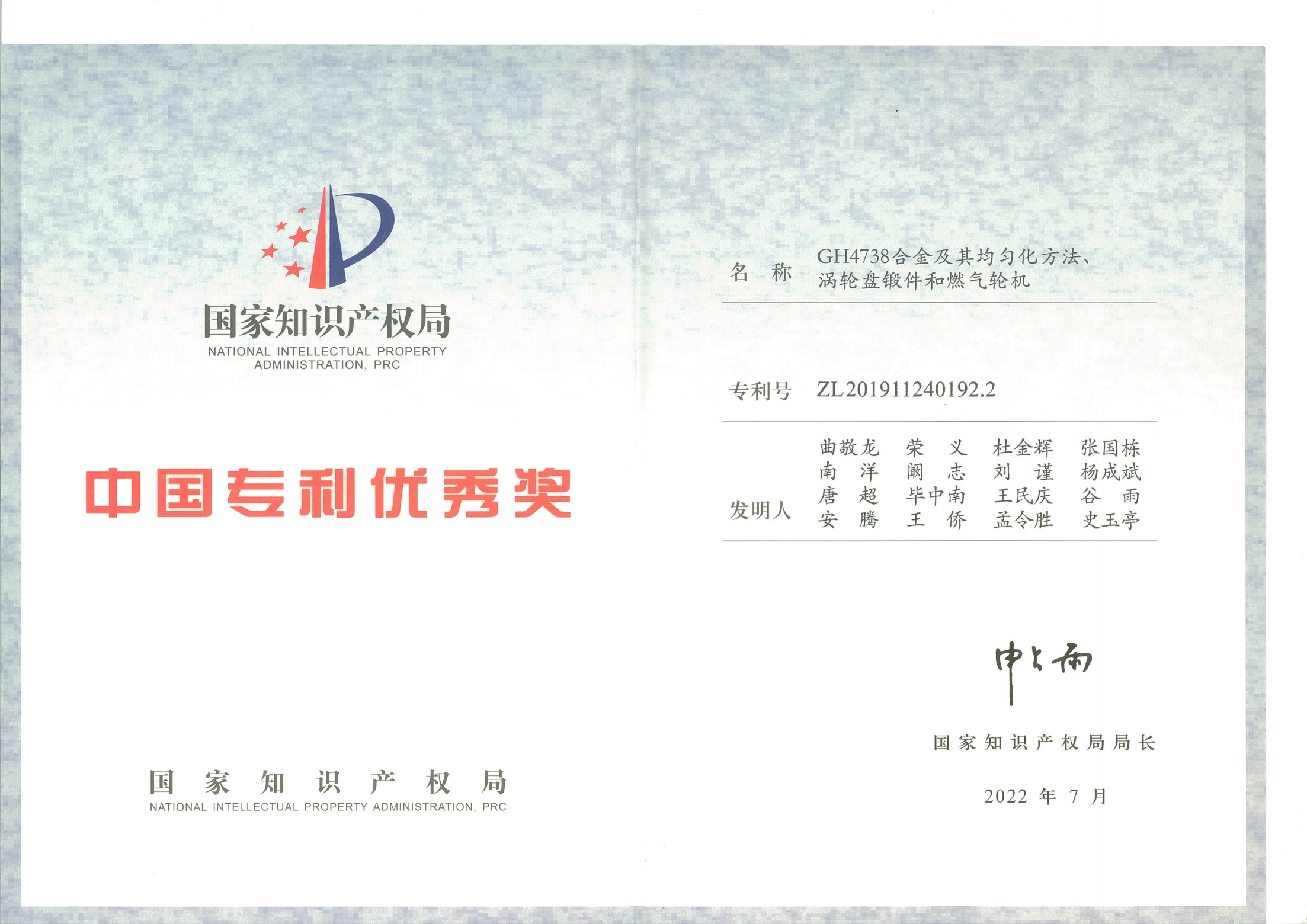 中國專利優(yōu)秀獎(jiǎng)